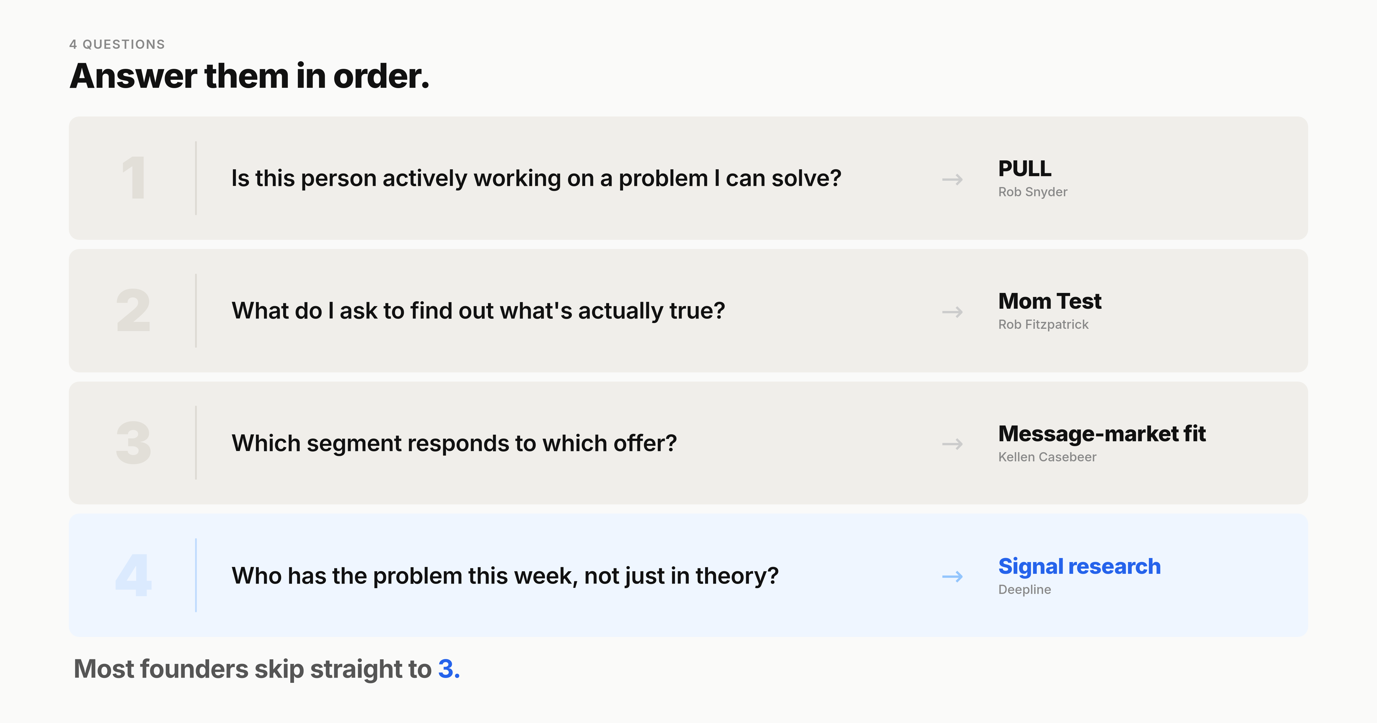 | 4 | Who has the problem this week, not just in theory? | Signal research - Deepline |